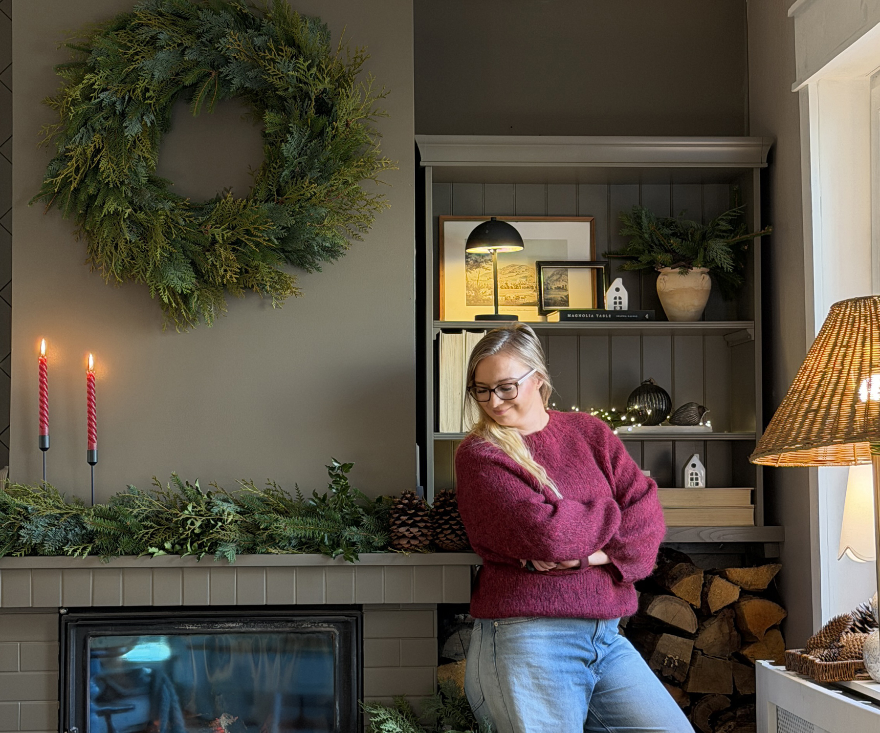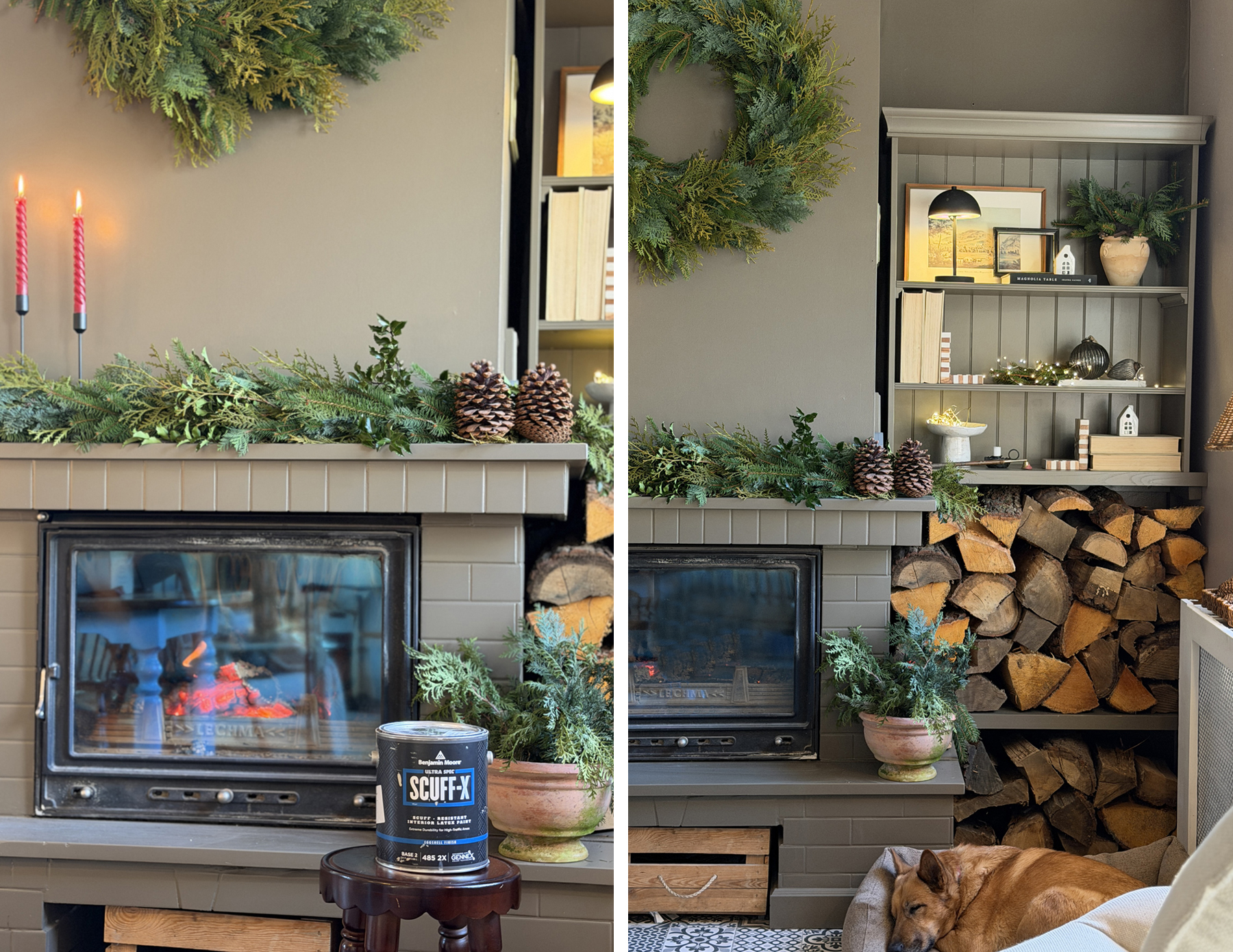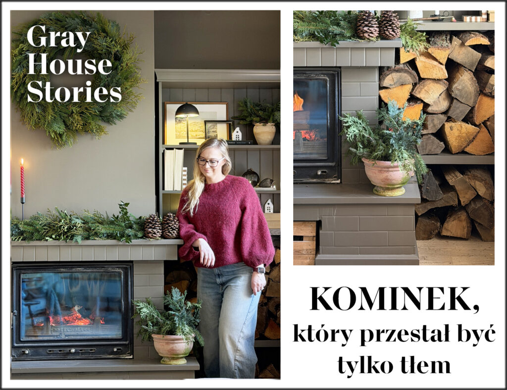 Przyszedł moment, w którym było jasne, że kominek dojrzał do metamorfozy. Nie dlatego, że coś było „nie tak”, ale dlatego, że całość potrzebowała większej spójności i spokoju wizualnego. Chciałam, żeby kominek, regał i półki na drewno mówiły jednym głosem, jednym kolorem, jedną formą, jednym klimatem. Inspiracje? Klasyczne, amerykańskie wnętrza, gdzie funkcja i estetyka idą ramię w ramię i żadna nie próbuje być ważniejsza od drugiej.