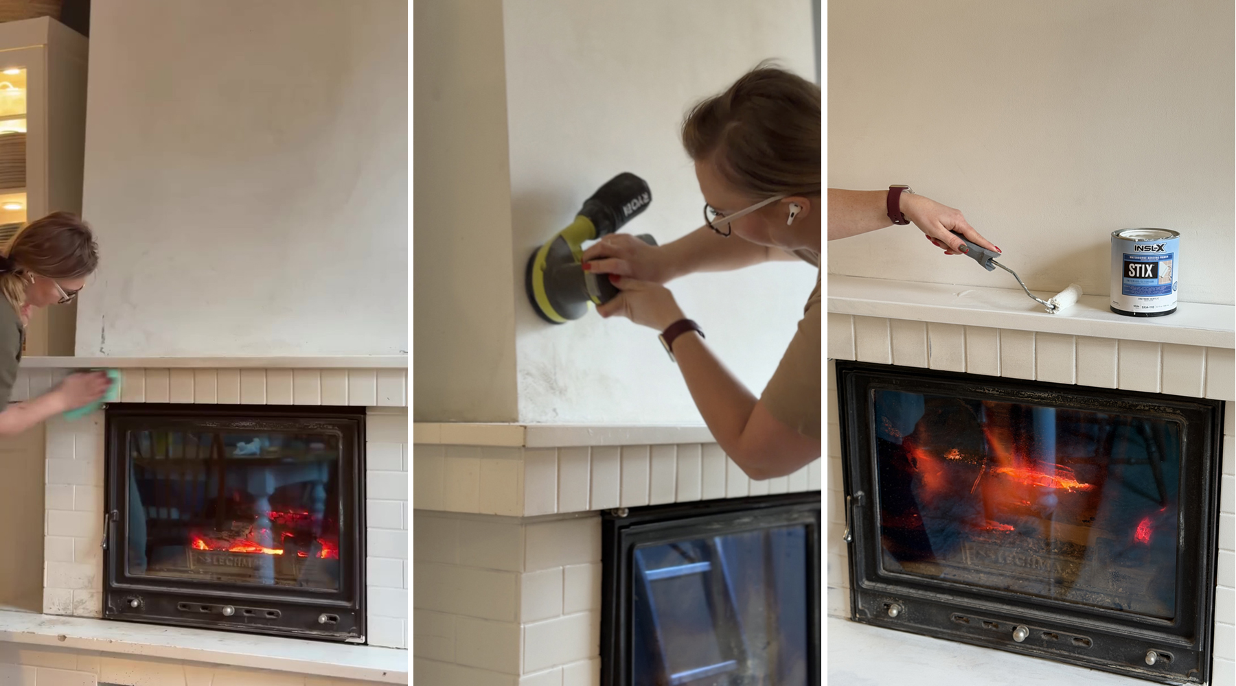 Kluczowym elementem całej zmiany są farby. Mimo że kominek jest w ciągłym użytkowaniu, farba nie łuszczy się, nie zdziera i nie pokazuje oznak zmęczenia. Aplikacja? Zaskakująco przyjemna bez walki, bez niespodzianek i bez poprawek w nieskończoność.